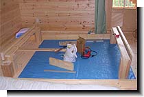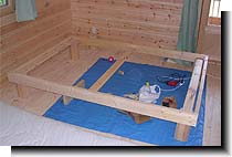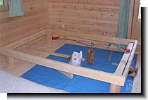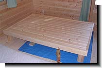 | ベッド作成♪ 私としてはイメージしたものができあがったと思ったが、これを見た主人は・・・、 お〜! いい縁台ができたな。 ・・・だって。 確かに言われてみれば、、、ガクッ... 頭側に天板をつければもう少しベッドらしく見えるかな!? |
