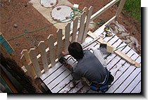 | 塗装はウッドデッキと一緒に自分たちでやりました。 雨が降ってきたりして大変だったけど楽しかった〜♪ |