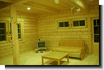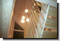 ロフトへの階段と照明